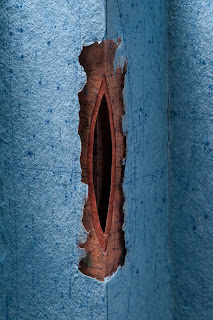 I am a bit behind on my posts. Until I catch up, I am adding this image of paper I made in Claudia's recent workshop here at the Appalachian Center for Craft (her workshop was titled Beyond the Basic Sheet). This paper was made from all the love letters I have ever received (envelopes were included, cards and such were excluded) 1999-2009. They were all put into a blender to create pulp. It was a great project- emotional.. but wonderful. I think the papers are beautiful, with bits of handwriting familiar to me and the blue and black patterns on the inside of the envelopes.